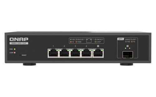 *Podporuje 10G Multi-Gig - čtyři porty 10GbE RJ45 (10G/5G/2,5G/1G/100M) a jeden kombinovaný port 10GbE SFP+ (10G/1G)/RJ45 (10G/5G/2,5G/1G/100M) poskytují univerzální a flexibilní síťové řešení. *Upgrade šířky pásma - podporuje agregaci linek LACP s celkovou šířkou pásma až 20 Gb/s, zvládne vysokorychlostní provoz od střihařských týmů a více NAS zařízení. *Podporuje ACL, přihlášení Qfinder Pro a správu SNMP pro zajištění bezpečnosti připojení k síti a zařízení pomocí centralizované správy a údržby síťových zařízení. *Prioritizace provozu - inteligentní plánování QoS/CoS/DSCP zajišťuje nepřerušovaný VoIP, streamování a zálohování. Segmentace VLAN zvyšuje efektivitu oddělení v síti. *Plynulé streamování - podporuje IGMP Snooping a 12K jumbo rámců, navrženo pro prostředí s více streamy IPTV a NVR, zajišťuje plynulé přehrávání a bezproblémový výkon NAS. *Online aktualizace firmwaru - systém QSS (QNAP Switch System) a Qfinder Pro umožňují kontrolu a aplikaci aktualizací firmwaru jedním kliknutím, čímž udržují systém bezpečný a aktuální. *Energetická úspornost -podpora IEEE 802.3az Energy Efficient Ethernet (EEE) pro dynamické snížení spotřeby energie podle síťového provozu – vyvážení výkonu a úspory energie.