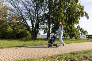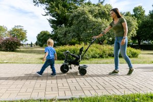 Přemění se z tříkolky s řidítky ovládané rodičem na samostatnou tříkolku.