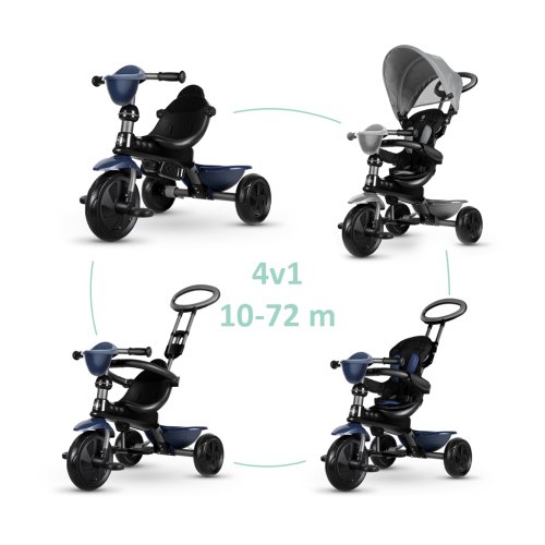 Tříkolka QPlay Cosy 4 v 1 roste spolu s vaším děťátkem od 10 do 72 měsíců.