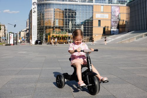 Nová verze QPlay Rito, díky které budou jízdy s vaším děťátkem ještě krásnější a zábavnější! Aktualizovaný rám s černým hliníkovým rámem, nová kola se sportovním designem, sluneční stříška s rozšířením, vhodná pro děti od 10 do 72 měsíců.