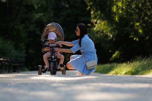 Nová verze QPlay Rito, díky které budou jízdy s vaším děťátkem ještě krásnější a zábavnější! Aktualizovaný rám s černým hliníkovým rámem, nová kola se sportovním designem, sluneční stříška s rozšířením, vhodná pro děti od 10 do 72 měsíců.