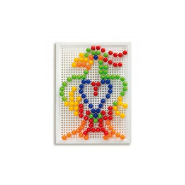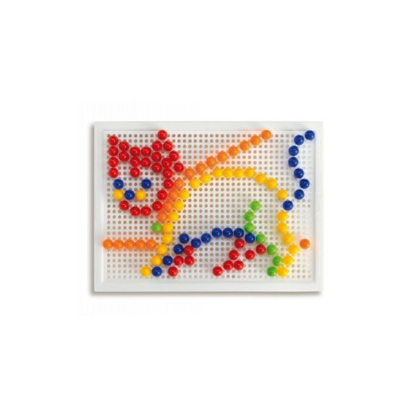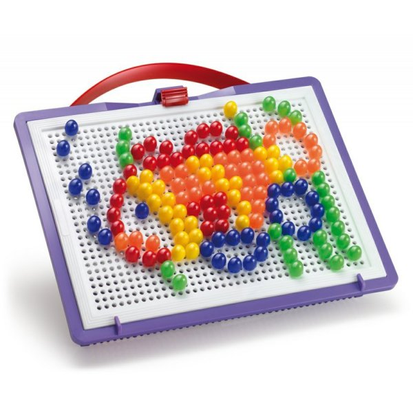Mozaiky u dětí rozvíjí jemnou motoriku, tvořivost a fantazii. Skládají se z kufříku, perforované hrací desky a barevných kolíčků s hlavičkami různých barev, průměrů a tvarů. Pomocí těchto kolíčků, které se zasazují do otvorů v hrací desce, tvoří děti různé obrázky nebo vzory. Po skončení hry lze vše uložit do kufříku, jehož víko po zajištění pojistkou tvoří sama hrací deska. Vyrobeno z plastů špičkové kvality. Hlavní vlastnosti: rozvíjí jemnou motoriku, tvořivost a fantaziiobsahuje 150 knoflíků o průměru 10 mm