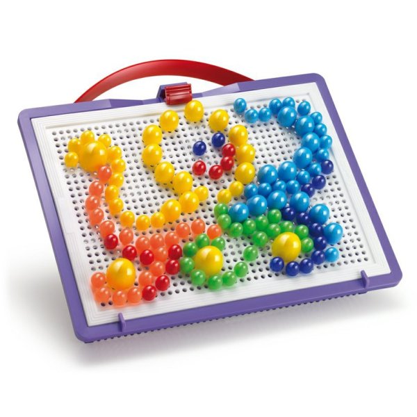 Mozaiky u dětí rozvíjí jemnou motoriku, tvořivost a fantazii. Skládají se z kufříku, perforované hrací desky a barevných kolíčků s hlavičkami různých barev, průměrů a tvarů. Pomocí těchto kolíčků, které se zasazují do otvorů v hrací desce, tvoří děti různé obrázky nebo vzory. Po skončení hry lze vše uložit do kufříku, jehož víko po zajištění pojistkou tvoří sama hrací deska. Vyrobeno z plastů špičkové kvality. Hlavní vlastnosti: rozvíjí jemnou motoriku, tvořivost a fantaziiobsahuje 300 knoflíků o průměru 10, 15, 20 mm