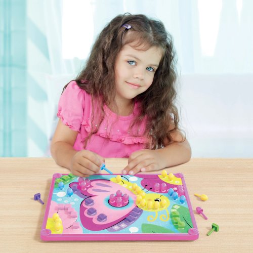 Kolíčková mozaika s úložným košem a 4 předtištěnými obrázkovými kartami pro zapichování kolíčků. Mozaika rozvíjející jemnou motoriku, koordinaci ruka-oko a kreativní myšlení. Skládá se ze 4 předtištěných, perforovaných karet, 180 barevných kolíčků, zapichovací podložky, úchytného rámu a úložného košíku. Doporučeno dětem od 3 let. Obsah balení:1 úložný košík1 zapichovací podložka s otvory na kolíčky1 úchytný rám4 perforované karty s obrázky180 barevných zapichovacích kolíčků ve 2 tvarech a 6 barvách Hlavní vlastnosti: podporuje jemnou motorikukoordinaci ruka-okokreativní myšlení