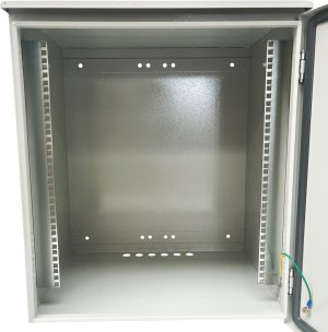 Rozvaděč je vyrobený z ocelových plechů o tloušťce 1,5 mm. Je vybavený dvojicí zámků se stejným klíčem. Zabezpečíte svá zařízení tak, abyste se k nim dostali jen vy. Na spodní straně se nachází 6 otvorů o průměru 25 mm s gumovými průchodkami. Na zadní části najdete 12 otvorů pro co nejpohodlnější uchycení ke stožáru či na zeď. Pokud některé z nich nevyužijete, oceníte gumové záslepky (součástí balení).