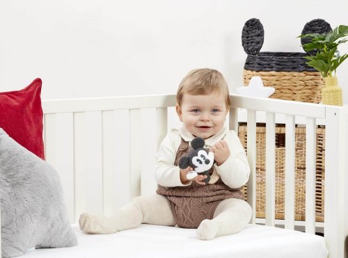 Chrastit a hrát si s Mickey Mousem zároveň? Proč ne! Tato roztomilá plyšová hračka Mickey Mouse na vysoce kvalitním dřevěném kroužku, zdobeném hvězdičkami, povzbudí vaše děťátko ke zkoumání a objevování svých smyslů prostřednictvím hry a zároveň nabízí úlevu pro malé zoubky. Hravé chrastítko s několika texturami a jemným zvukem, který upoutá jejich pozornost. Zvuk, který je pro ně nový a vzrušující, také povzbudí vaše dítě, aby se naučilo dosahovat, uchopovat a třást, což pomáhá raným motorickým dovednostem a povzbuzuje fyzický rozvoj. Mickey Mouse byl vytvořen Waltem Disneym v roce 1928 a je zbožňován generacemi, a toto zábavné a hmatové dřevěné chrastítko, vytvořené z přírodního bukového dřeva a nejkvalitnějších látek, zachycuje jeho ikonické rysy a optimistické, odvážné a milé vlastnosti. Oslavuje tak jednu z nejslavnějších světových kreslených postaviček všech dob. Chrastítko je dodáváno v poutavé vintage dárkové krabičce. Hlavní vlastnosti: vhodné od narozeníperfektní jako dárek pro novorozeněnapomáhá k rozvíjení smyslůnapomáhá raným motorickým dovednostempoutavá vintage krabička