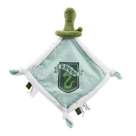 Mazlení je prostě ještě kouzelnější! Objevte kouzelný svět Harryho Pottera s tímto komfortním muchláčkem Zmijozel. Muchláček s hadem, se zmijozelským erbem a vyšívanými hvězdami má také měkké štítky a zauzlované rohy ideální pro hmatové a smyslové hraní. Je vyrobený z nejjemnějšího plyše, přináší do spánku nádech magie a je skvělým dárkem pro malé čaroděje a čarodějnice. Hlavní vlastnosti: vhodné od narozenískvělý dárek pro malé fanoušky kouzelného světa Harryho Potteranapomáhá k rozvíjení smyslůměkký plyš, kvalitní materiálperfektní jako dárek