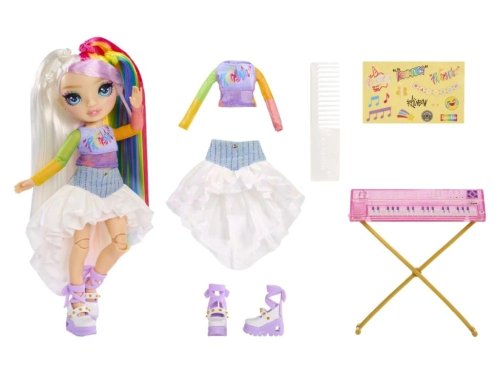 Každá panenka z této série představuje talentovanou členku hudební kapely, která už v mladém věku září na pódiu. Amaya, vysoká přibližně 23 cm, vás oslní svým duhovým vzhledem a klávesami, na které s nadšením hraje. S pohyblivými klouby ji snadno nastavíte do různých pozic, aby se mohla předvést během epického koncertu. Díky veselým nálepkám je možné panenku personalizovat a dotvořit její jedinečný styl dle vaší fantazie.