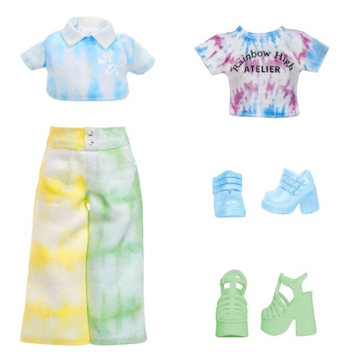Udělejte si svou vlastní Rainbow High panenku! V balení najdeš panenku s bílými vlasy oblečenou od hlavy k patě do bílé barvy a 6 smývatelných duhových prášků (červený, oranžový, žlutý, zelený, modrý a fialový), gumičky k batikování a aplikační houbičku. Existuje nekonečně mnoho způsobů, jak vybarvit oblečení panenky nebo její vlasy. Po dokončení můžeš panenku opláchnout a vybarvit ji úplně jinak. Prášek nasypeš do vody. Do barevné vody můžeš namočit vlasy a oblečení, nebo houbičku, kterou budeš vytvářet vzory. Pomocí gumiček svaž oblečení a vytvářej různě batikovaný outfit.