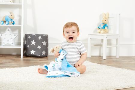 Vaše dítko se velmi rádo zachumlá do plyšové deky s králíčkem Petrem. Je měkká, velká, můžete ji jednoduše složit a zapnout. Jějí rozměr je 37,5x37,5 cm. Z vnější strany je modrá, uvnitř má potisk ilustrace ze stejnomenné knížky Beatrix Potter. Perfektní jako dárek k narození nebo křtinám.