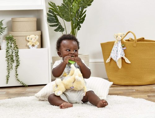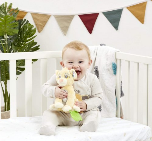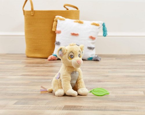 Seznamte se a hrajte si s roztomilým malým lvíčetem Simbou z Disney pohádky Lví král! Tato hračka je vyrobená z nejměkčího plyše a má spoustu zábavných funkcí, které rozvíjejí motorické smysly dětí. Lvíče má texturované bříško a měkce lemované uši. Na tlapce má připevněné kousátko, které pomáhá zklidnit bolavé dásně dítěte. Jednotlivé látkové stuhy, které jsou na ocásku a na noze, vybízejí ke smyslové hře. Tato plyšová hračka je vhodná od narození. Malý lvíček Simba je dokonalým plyšovým kamarádem pro různá dobrodružství, vyprávění či jen tak k přitulení před spaním. Hlavní vlastnosti: plyšová aktivity hračka s kousátkemvhodné od narozeníperfektní jako dárek pro novorozeněnapomáhá k rozvíjení smyslůnapomáhá raným motorickým dovednostem