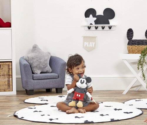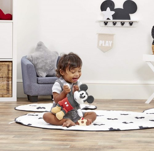 Hrajte si s Mickeym! Se zábavnou plyšovou hračkou Disney Mickey Mouse Activity si užijete spoustu zábavy a her. Probuďte svou malou představivost touto 19 cm super měkkou hračkou Activity, která oslavuje jednu z nejslavnějších světových kreslených postaviček všech dob. Tato super plyšová hračka Mickey Mouse, zbožňovaná generacemi od roku 1928, která zachycuje jeho ikonické rysy a optimistické, odvážné a roztomilé vlastnosti, je dokonalým parťákem na hraní pro dobrodružství vašeho nejmenšího! Kousátko ve tvaru hvězdy, které je vhodné od narození, je připevněné k Mickeyho ruce. Mickey je oblečen do červených šortek a má žluté vrásčité boty, které u dětí podporují hmatové a smyslové zkoumání prostřednictvím hry. Tato hračka také pomáhá rozvoji jemných motorických dovedností. Mickey Mouse je také dokonalým plyšovým kamarádem, se kterým si můžete užívat vyprávění nebo se jen tak přitulit před spaním. Hlavní vlastnosti: vhodné od narozeníperfektní jako dárek pro novorozeněnapomáhá k rozvíjení smyslůnapomáhá raným motorickým dovednostemplyšová aktivity hračka s kousátkem