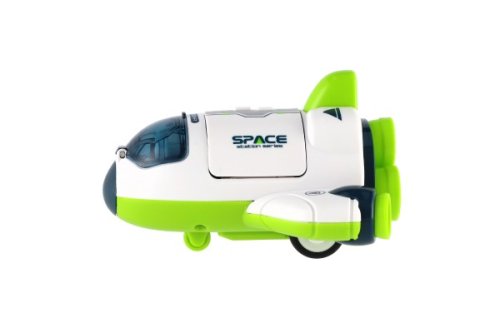 Raketa na setrvačník, která nesmí chybět žádnému milovníkovi vesmíru. Raketoplán i kabina se dá otevřít. Obsahuje i figurku kosmonauta. Velikost rakety: 10 x 11 cm Vhodné pro děti od 3 let