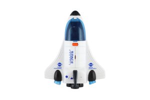 Připravte se na vesmírnou misi. Tento plastový raketoplán s figurkou astronauta přináší dětem skvělý zážitek plný světelných i zvukových efektů. Stačí stisknout tlačítko a raketoplán se rozzáří a vydá autentické zvuky startu – ideální pro všechny malé průzkumníky vesmíru.