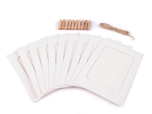 Sadu papírových rámečků s dřevěnými kolíčky a jutovou šňůrkou využijete na vystavení fotografií, pohlednic a malých obrázků. Vyniknou v každém interiéru, okamžiky na fotografiích tak budete mít neustále na očích. Sada č.1, 3 a 4 je určená na velikost obrázků 11 x 15 cm. Sada č.2 je určená na velikost obrázků 9,5 x 13 cm.
