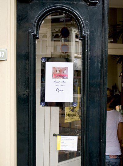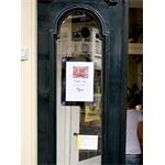 vyvěšením důležitých informací na výlohu, okno nebo jinou
