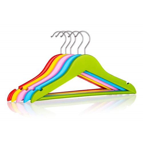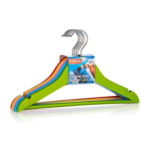 Sada dětských barevných ramínek obsahuje 5 ks dřevěných šatních ramínek s kovovými háčky na věšení nejrůznějšího prádla. Šířka ramínek je 32 cm, vhodná pro dětské oblečení.