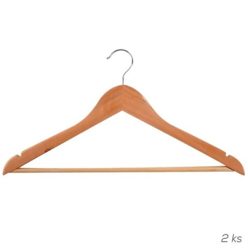 Dřevěné ramínko s otočným kovovým háčkem pro zavěšení Možnost zavěšení kalhot na spodní tyčce a sukní na postranní háčky Balení obsahuje 2 ks ramínek Rozměry: 44,5 x 22,5 cm (š x v) Záruka: 2 roky