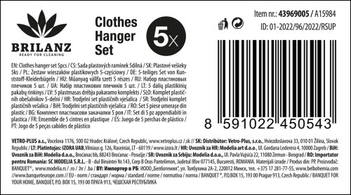 Sada plastových ramínek BRILANZ, s otočným háčkem, v moderních barvách slouží, k věšení nejrůznějšího prádla.