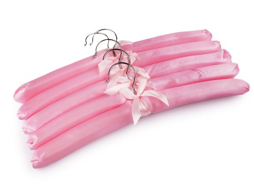 Ramínko na oděvy ocení ve své domácnosti elegantní a romantické duše. Na dotek je měkké a potažené lesklým saténem. Ramínka jsou vhodná na svatební šaty, šaty pro družičky nebo na oděvy z jemných materiálů. Háček je otočný. Ramínko zdobí saténová mašlička. Barvy mašliček se mohou lišit. [Barvy ramínek i mašliček mohou mít různé barevné odstíny.]