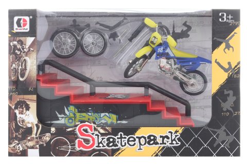 Plastová rampa na skákání se šroubovací motorkou. Rozměry motorky cca 10 x 7 cm. Rozměry balení cca 28 x 18 x 11 cm. Věk 3+