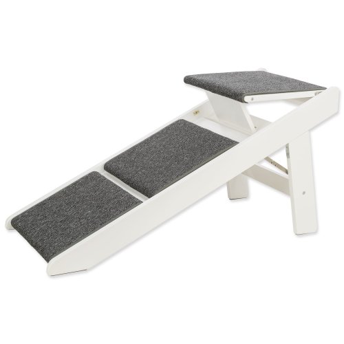 Konstrukce umožňuje snadnou a rychlou úpravu z režimu schodů do režimu rampy, což z něj činí ideální řešení pro různé situace a potřeby. Například, pokud je doma starší pes, který již nemůže tak snadno skákat na oblíbenou pohovku, rampa může poskytnout jednoduchý a bezpečný způsob, jak mu umožnit dostat se na pohovku bez rizika zranění. V případě potřeby umožnit přístup na vyvýšené místo pro malého psa nebo kočku, může být režim schodů vhodnější.