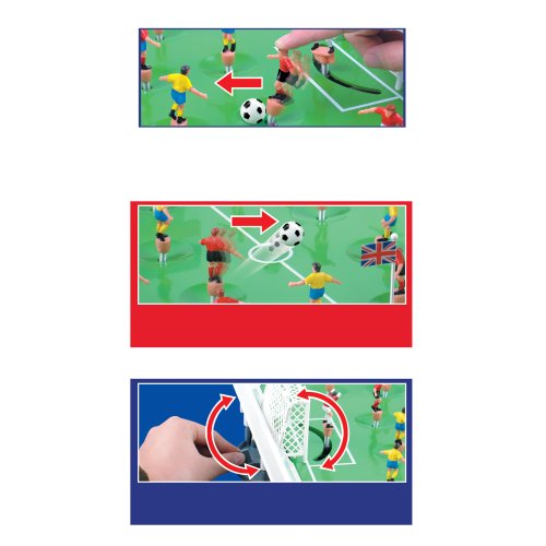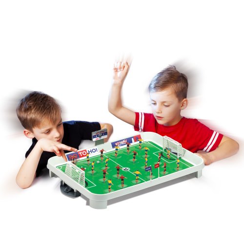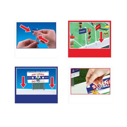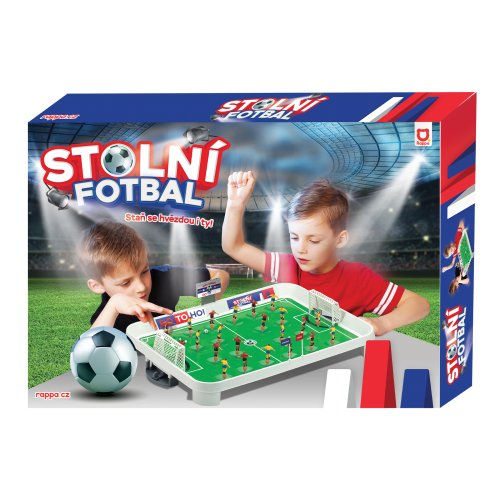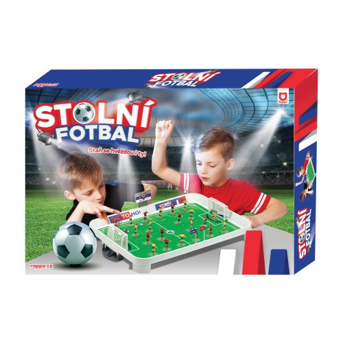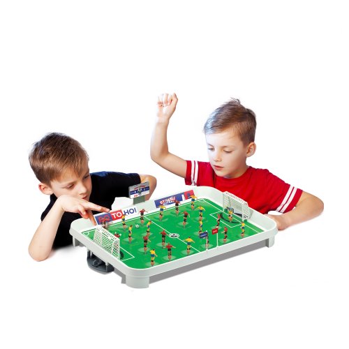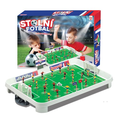 Stolní cvrnkací fotbal je oblíbenou hrou pro malé fotbalisty, ale i pro celou rodinu. Plastové hřiště obsahuje 22 hráčů, 2 branky, 1 míč, 2 stožáry s vlajkami a počítadlo gólů. S tímto fotbálkem své kamarády stoprocentně ohromíš. Tak zažij spoustu zábavy a zahraj si senzační zápas! Rozměr hrací plochy je cca 44 x 30 cm.