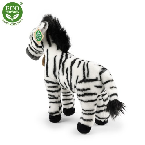 Plyšová zebra měří 30 cm a díky těm nejkvalitnějším materiálům se řadí do Exkluzivní kolekce plyšových hraček značky Rappa. Díky ručnímu zpracování každého kusu navíc vypadá jako živá. Proč označení ECO-FRIENDLY? Rappa si je vědoma všech dopadů na životního prostředí, zaměřuje se na udržitelnost a omezení používání plastů na minimum. Proto je výplň hraček vyrobena z recyklovaných materiálů, zejména PET lahví. Ta je však zcela nezávadná a vhodná i pro děti od narození. FUN FACT: Věděli jste, že každá zebra má unikátní pruhy, jako lidské otisky prstů?