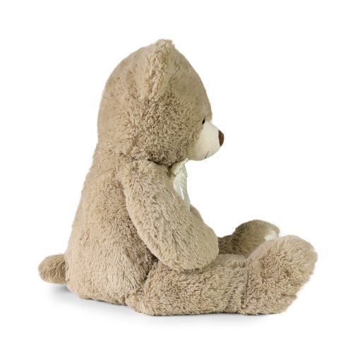 Plyšový medvěd by rozhodně neměl chybět v žádném dětském pokojíčku! Medvěd ve velikosti 78 cm je vyroben z kvalitního heboučkého plyše v barvě kapučína a krk mu zdobí krémově bílá saténová mašle. Součástí je papírová visačka ve tvaru srdíčka, na kterou můžete napsat věnování. Tento plyšový kousek je ideálním dárkem pro malé i velké! Hlavní vlastnosti: roztomilý mazlíčekruční zpracovánís visačkou ve tvaru srdíčka