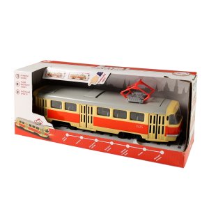 Originální červeno-bílá tramvaj T3 v měřítku 1:54, která oznamuje stanice v českém jazyce, je určitě tím pravým dárkem pro vaše děti! Tramvaj jezdí na volný chod, dveře lze manuálně otevřít a zavírají se pomocí tlačítka umístěného na střeše vozu. Při každém otevření se ozve hlášení, při zavření hlásí další zastávku. Otevřením předních dveří se v tramvaji rozsvítí modré světlo. Tahle unikátní hračka v délce 28 cm, je vyrobená z plastu a vyžaduje použití 3 ks baterií LR44/AG13, které jsou její součástí. V roce 2020 vyhrála 3. místo v soutěži Hračka roku v kategorii Klučičí hračky v České republice.