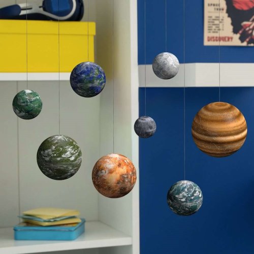 "Původní trilogie Star Wars ožije u vás doma! Sestavte si vlastní soustavu 8 nejvýraznějších planet z Galaxie Star Wars z kvalitních plastových 3D Puzzle dílků. Realistické modely planet Hvězda smrti, Endor, Hoth, Yavin 4, Tatooine, Alderaan, Dagobah a Bespin si snadno uspořádáte a vystavíte díky praktickým stojánkům a podkladu pro sestavení Galaxie Star Wars. Planety můžete také zavěsit ze stropu pomocí přiložené nylonové šňůry. Puzzle dílky do sebe přesně zapadají a drží pohromadě bez lepení díky patentované EasyClick technologii. "