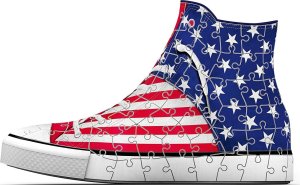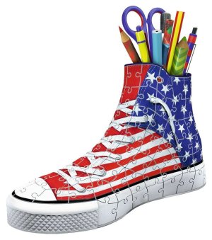 Geniální spojení pro milovníky tenisek a skládání! Poskládejte si 3D puzzle neotřelého tvaru, které oživí Váš stůl... RAVENSBURGER se pustil do produkce 3D tenisek, které lze použít třeba jako originální tužkovníky pro pera, pastelky nebo třeba štětce. Speciální zakřivené nebo ohebné dílky, které přesně zapadnou na své místo, umožňují postavit designovou tenisku s potiskem americké vlajky, která působí velmi reálně. Dílky jsou vyrobeny z pevného plastu a zaručí vynikající stabilitu. Kecka drží bez nutnosti lepení. Balení obsahuje: 108 očíslovaných dílků puzzle, 4 díly příslušenství a návod. Upozornění: Obsah tenisky vyobrazený na fotografii není součástí balení. Rozměr složeného puzzle cca 8,7 x 21,4 x 13,5 cm