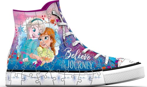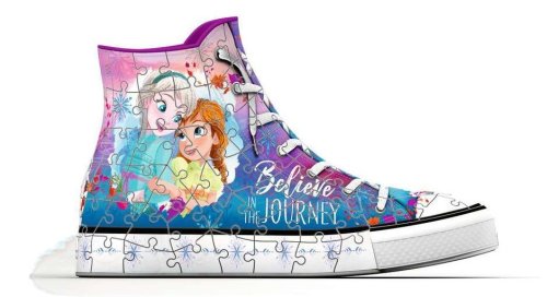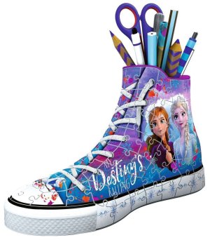 Geniální spojení pro milovníky tenisek a skládání! Poskládejte si 3D puzzle neotřelého tvaru, které oživí Váš stůl ... RAVENSBURGER se pustil do produkce 3D tenisek, které lze použít třeba jako originální tužkovníky pro pera, pastelky nebo třeba štětce. Speciální zakřivené nebo ohebné dílky, které přesně zapadnou na své místo, umožňují postavit designovou tenisku s Annou a Elsou z Ledového království 2 . Dílky jsou vyrobeny z pevného plastu a zaručí vynikající stabilitu. Kecka drží bez nutnosti lepení. Balení obsahuje: 108 očíslovaných dílků puzzle, 4 díly příslušenství a návod. Upozornění: Obsah tenisky vyobrazený na fotografii není součástí balení. Rozměr složeného puzzle cca 21,4 x 13,5 cm