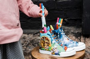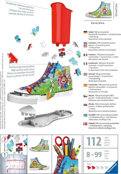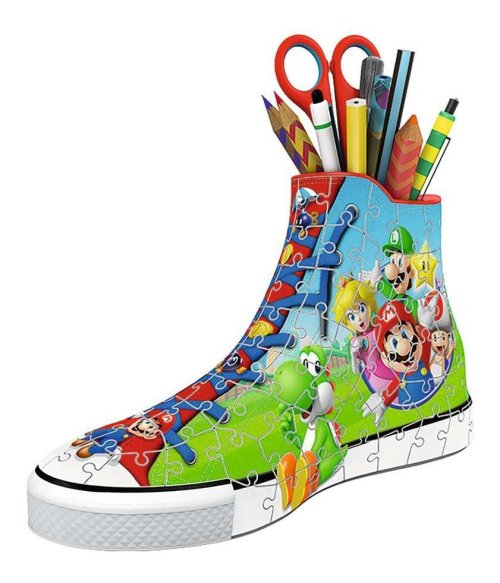 Vytvoř si ze 108 plastových puzzle dílků tuto klasickou tenisku s motivem Super Maria a získej perfektní dekoraci do pokoje! Po složení na tebe čeká další bonus: můžeš ji použít na štětce, tužky, atd.