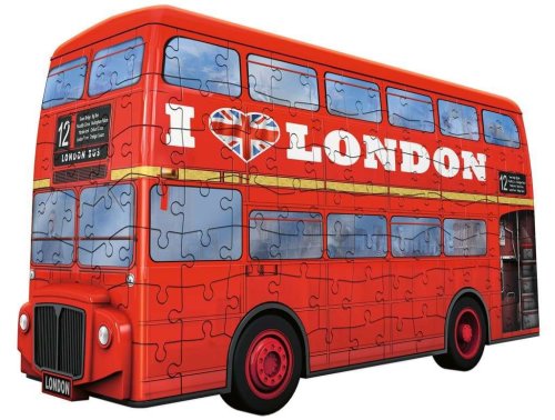 Barevný 3D model slavného londýnského autobusu, který má dvě patra! Speciální zakřivené nebo ohebné dílky, které přesně zapadnou na své místo, umožňují postavit fascinující modely slavných budov a vozidel. Dílky vyrobeny z pevného plastu zaručí vynikající stabilitu, a celá stavba drží bez nutnosti lepení. 3D puzzle RAVENSBURGER lze skládat podle motivu (obtížnější varianta) nebo podle praktického číslování na zadní straně dílků. Balení obsahuje: 216 očíslovaných dílků puzzle, 28 dílů příslušenství a návod. Ilustrační video Rozměr složeného puzzle cca 27,4 x 14,3 x 7,5 cm