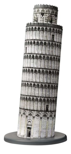 Po úspěchu s koulí Puzzleball a pyramidou Puzzlepyramid se RAVENSBURGER pustil do další výzvy - a tou jsou stavby. Speciální zakřivené nebo ohebné dílky, které přesně zapadnou na své místo, umožňují postavit fascinující modely slavných budov. Dílky vyrobeny z pevného plastu zaručí vynikající stabilitu, a celá stavba drží bez nutnosti lepení. Díky originálním doplňkovým dílkům budou vaši stavbu všichni obdivovat. Balení obsahuje: 216 očíslovaných dílků puzzle,3 díly příslušenství a návod. Ilustrační video Šikmá věž (Torre pendente) se nachází v Itálii v Pise. Stojí na Náměstí zázraků (Piazza dei Miracoli), společně s dómem a kruhovým baptisteriem (křestní kaplí). Je vysoká 56 metrů. Věž je postavena z bílého mramoru. Již krátce po začátku stavby v roce 1174 se začala naklánět. Důvodem jsou mělce založené základy v měkké hornině. Zajímavostí je, že věž se původně nakláněla na opačnou stranu. Rozměr složeného puzzle cca 14 x 29 cm