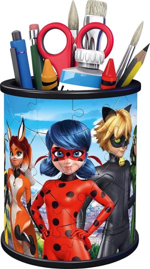 Tužky už se nebudou válet po stole a navíc bude krásný dárek vždycky na očích! Další z řady praktických předmětů ve formě 3D puzzle od výrobce RAVENSBURGER se stane skvělým dárkem pro každou příležitost. A nemusí sloužit pouze jako tužkovník, ale třeba jako stojánek na dekorativní kosmetiku a jiné věci. Speciální zakřivené dílky, které přesně zapadnou na své místo, vytvoří kouzelný stojánek nejen na psací potřeby, ale na cokoliv, co děti potřebují . Dílky jsou vyrobeny z pevného plastu a zaručí vynikající stabilitu bez nutnosti lepení. 3D puzzle RAVENSBURGER lze skládat podle motivu (obtížnější varianta) nebo podle praktického číslování na zadní straně dílků. Stojan má po sestavení výšku přibližně 9,5 cm o průměru 7,7 cm. Balení obsahuje: