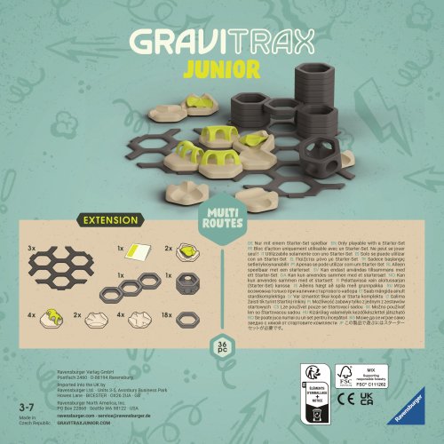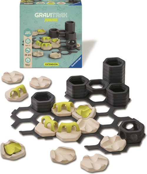 Ti nejmenší si staví své vlastní světy z kuličkových drah, které lze podle libosti zdobit a vytvářet tak jednotlivé tematické světy. Děti si tak při kreativním stavění užijí mnoho zábavy. Rozšíření Křižovatky obsahuje rozmanité prvky pro tvorbu cest, které se rozvětvují do různých směrů a otevírají nové možnosti dráhy. Děti si tak sami mohou v rámci GraviTrax dráhy prozkoumat toto prostředí a začít dobrodružství plné spletitých cest. Všechny stavební a dekorační součásti jsou vyrobeny z dřevěného bioplastu. Rozšíření obsahuje 35 stavebních a dekoračních prvků.
