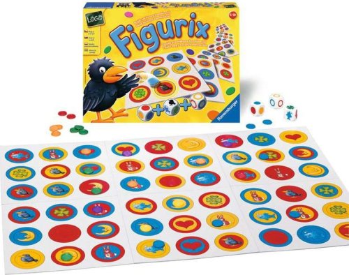Na třech dřevěných kostkách vidíte kroužky, kolečka a obrázky v různých barvách. Kdo najde jako první hozenou kombinaci na barevných tabulích? Obsah balení: 6 hracích tabulí, 3 dřevěné kostky, 36 žetonů v 6 barvách, 1 návod.