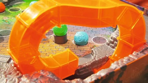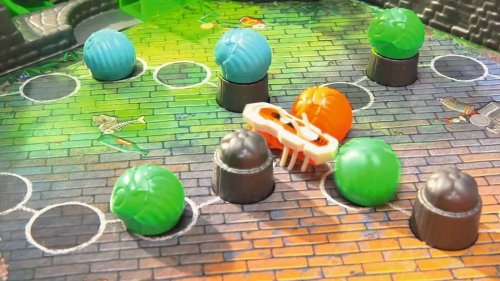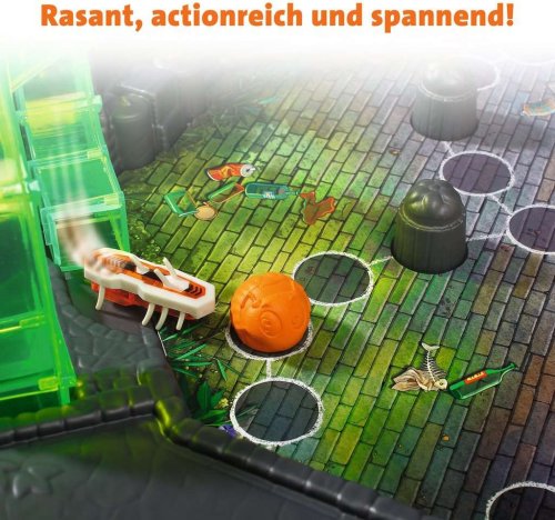 Pozor, ze šachty vylézá šváb! Brouci rabují v popelnicích na dvoře, v revíru švába. „Rychleji, už ho slyším!“ „Pozor, už je tu zááááás!“ Z jedné ventilační šachty najednou na dvůr vystřelí šváb. Teď už může broukům pomoci jen jedno: dělat mrtvé a doufat... Nedostal je? Měli štěstí! Tak tedy honem zase kupředu k cíli. Dostal je? Pak rychle zpátky na start. V této hře budete potřebovat štěstí v kostkách a železné nervy, abyste své brouky dostali do cíle jako první! Šváb vylézá nahoru. A už vytlačuje z cesty jednu hrací figurku ve tvaru brouka za druhou. Nyní je to na tobě: Udržet nervy na uzdě. Ostatní brouci se třesou. Snad se nenechají chytit! Ale stejně rychle, jako se šváb objeví, se zase rozprchne a zmizí ve smyčkové větrací šachtě. A brouci? Ti, kteří mají štěstí, si hodí kostkou, aby se dostali na místo určení. Ale pozor, nikdo neví, kdy se šváb v této akční hře znovu objeví a především čí figurku brouka pak odstrčí. Jakmile šváb vyleze ze smyčky a vstoupí na dvorek, je to pro brouky STOP a MRAZ! Dokud šváb opět nezmizí. Všichni hráči potřebují štěstí v kostkách a ocelové nervy, aby se jejich brouci dostali do cíle jako první. Obsah balení: 1 HEXBUG® nano V2®, originální výrobek firmy Innovation First, Inc, www.innovationfirst.com (včetně baterie), 1 hrací deska, 1 trojrozměrný dvůr, 2 smyčkové tunely (loopingy), 12 figurek brouků, 1 kostka, 1 návod.