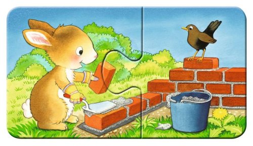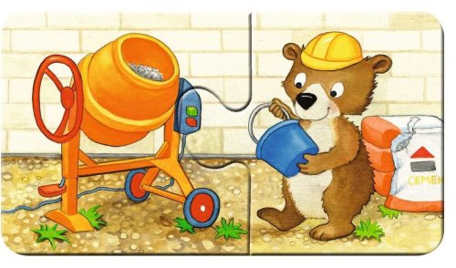 Dětské puzzle s krásnými obrázky speciálně vytvořené pro nejmenší děti. Robustní pevné dílky jsou vyrobeny z extra silného kartonu a podporují u dětí rozvoj motoriky, soustředění a fantazii. Děti si mohou poskládat devět různých obrázků ze dvou dílků. Rozměr složeného puzzle cca 18 x 10 cm