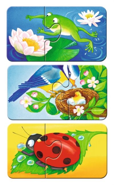Dvoudílné puzzle s krásnými obrázky speciálně vytvořené pro nejmenší děti.