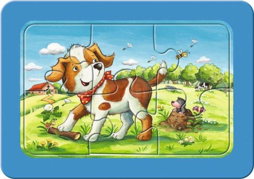Dětské puzzle s krásnými obrázky speciálně vytvořené pro nejmenší děti. Robustní pevné dílky jsou vyrobeny z extra silného kartonu a podporují u dětí rozvoj motoriky, soustředění a fantazii. Děti si mohou poskládat tři různé obrázky s šesti dílky. Vhodné pro děti od 2,5 roku. Rozměr složeného puzzle cca 18 x 10 cm