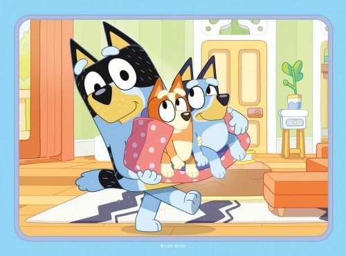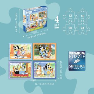 Progresivní puzzle s různou obtížností - 4 puzzle s 12 - 24 dílky, s vyšším počtem dílků se zmenšuje jejich velikost. Rozměr složeného puzzle cca 19 x 14 cm