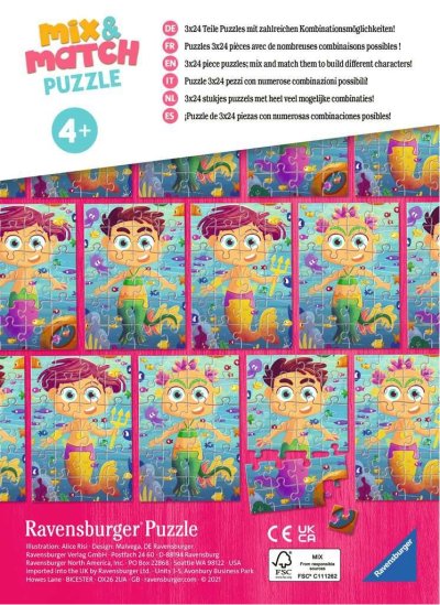 Míchej a skládej! Můžeš poskládat motivy podle obrázků a nebo vzájemně kombinovat a míchat jednotlivé dílky ze všech tří puzzle a vytvářet nové legrační postavy. To bude zábava! V jedné krabičce najdete tři puzzle pro děti s 24 dílky.
