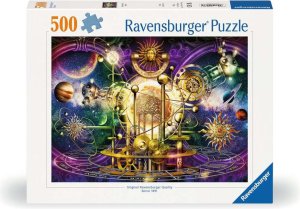 Skvělá puzzle pro každého fanouška vesmíru a astronomie! Při učení složitých konceptů, jako je například fungování vesmíru, je vždy snazší mít k dispozici vizuální pomůcky - od středověkých astronomických hodin až po zlaté moderní ornáty! Ačkoli první vědci věřili, že středem naší sluneční soustavy je Země, v roce 1514 astronom Koperník umístil do jejího středu Slunce. První moderní mechanický model sluneční soustavy byl vytvořen na počátku 17. století a pojmenován po svém patronovi, hraběti z Orrery. Orrery představuje planety při pohledu z vnějšku sluneční soustavy v přesném měřítku modelu s periodami oběhu (ačkoli velikosti a vzdálenosti planet jsou nutně nepřesné). Obvykle je poháněn hodinovým mechanismem s glóbusem představujícím Slunce uprostřed a planetou na konci každého ramene. Hodinář George Graham se zasloužil o vytvoření první orlojnice (tzv. planetária), která dokázala demonstrovat proporcionální pohyb planet kolem Slunce. Rozměr složeného puzzle cca 49 x 36 cm