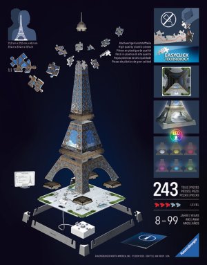 realistický 3D model s autentickými detaily, noční edice s LED modulem, který nabízí tři světelné efekty: stálé bílé světlo, pulsující světlo nebo střídající se barvy, snadná montáž díky očíslovaným dílkům – vhodné i pro začátečníky, bez nutnosti lepidla – všechny dílky pevně zapadají, elegantní dekorace do obývacího pokoje, pracovny nebo ložnice, skvělý dárek či suvenýr pro milovníky ikonické architektury.