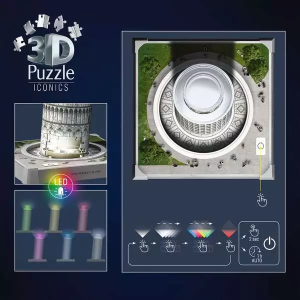 Postavte si osvětlený model věže v Pise z Iconics edice pomocí stabilních plastových dílků a nechte ho rozzářit pomocí LED světla. Více možností v nastavení světla.
