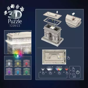 Postavte si osvětlený model Vítězného oblouku z Iconics edice pomocí stabilních plastových dílků a nechte ho rozzářit pomocí LED světla. Více možností v nastavení světla.