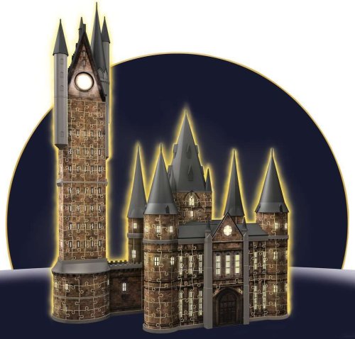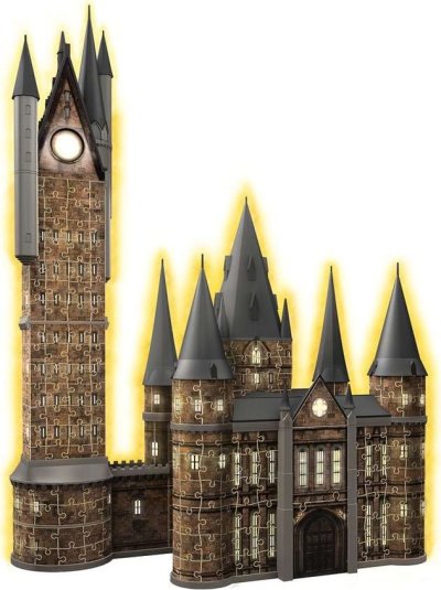 Noční edice Bradavické školy čar a kouzel! Stavba z výroby německé společnosti RAVENSBURGER se díky LED světlu ve tmě barevně rozzáří. Noční hrad je skvělým dárkem i nevšedním kouskem v 3D rozměru. Speciální ohebné dílky, které díky technologii EASYCLICK přesně zapadnou na své místo, umožňují postavit fascinující model. Dílky vyrobeny z pevného plastu zaručí vynikající stabilitu a celá stavba drží bez nutnosti lepení. Díky originálním doplňkovým dílkům budou vaši stavbu všichni obdivovat. Balení obsahuje: plastové puzzle dílky, příslušenství, světelný modul vč. světelného pásu LED a návod. Pro provoz výrobku je třeba 3 ks 1,5V baterie AAA (nejsou součástí výrobku). Obtížnost: 3,5 Rozměr složeného puzzle cca 38,7 x 21,5 x 52,5 cm